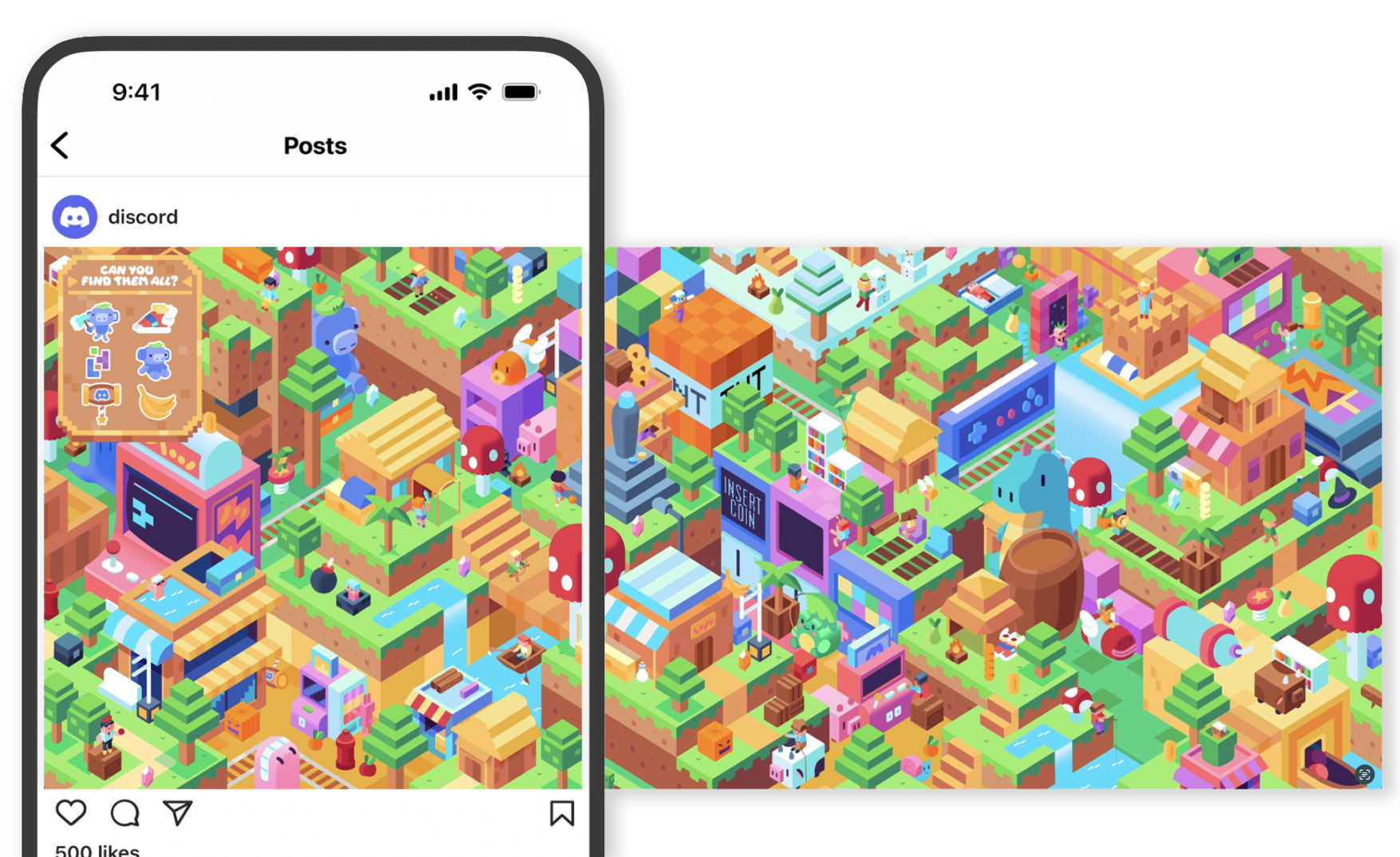 These animated maps spanned multiple frames on social, each frame packed with various details, making it a fun puzzle to search for Wumpus every day leading up to Discord’s Birthday!